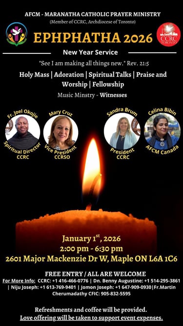 The Catholic Charismatic Renewal Council (CCRC) is a vibrant ministry under the Archdiocese of Toronto, born from the fire of Pentecost and guided by the Holy Spirit. We are a family within the Catholic Church, united in our mission to form disciples of all nations.