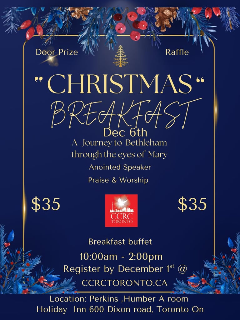 Join us on Dec 6th for a morning of praise and worship and enjoy a breakfast buffet as we share in the spirit of the season. We’ll also have a raffle, a door prize, and more festive fun throughout the event.